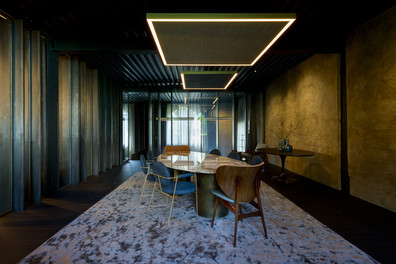 Autodialog knows better than most that digital and service design are increasingly present in the general business world, including the automotive sector. Autodialog offers an online platform which connects dealers, car manufacturers, drivers and third parties. It also facilitates the communication between all parties. They chose Axel Vervoordt’s prestigious Kanaal site as the location of their new head office. Developed by architects Coussée and Goris, one of the units was furnished in cooperation with interior architect Katrien Doms. A dark, warm atmosphere with rich materials and earthy textures define this space. Think velvet, brass and wood textures.